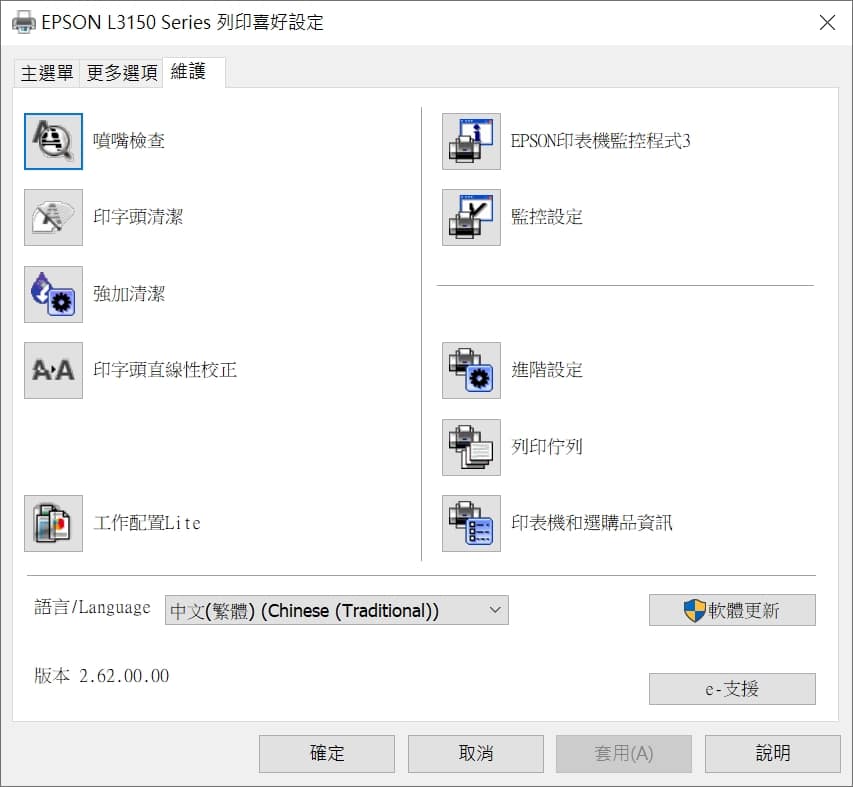 - 若清潔印字頭數次後,輸出成品仍出現條紋或是噴嘴檢查圖案仍出現線條中斷或線條遺失情形時,請先停止列印至少十二個小時,然後再執行噴嘴檢查。若列印品質仍未改善,您可執行強加清潔(強力清潔)。執行此功能之前,請閱讀下列注意事項: