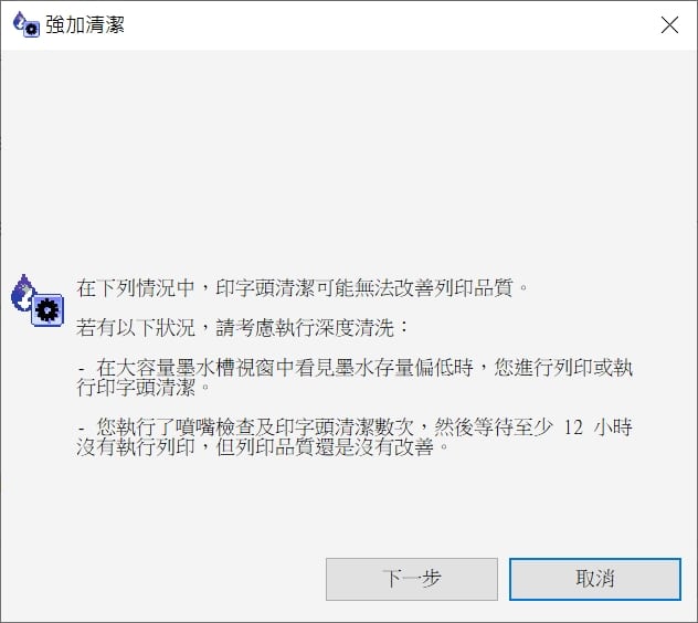 - 按下強加清潔(強力清潔),即出現以下視窗。